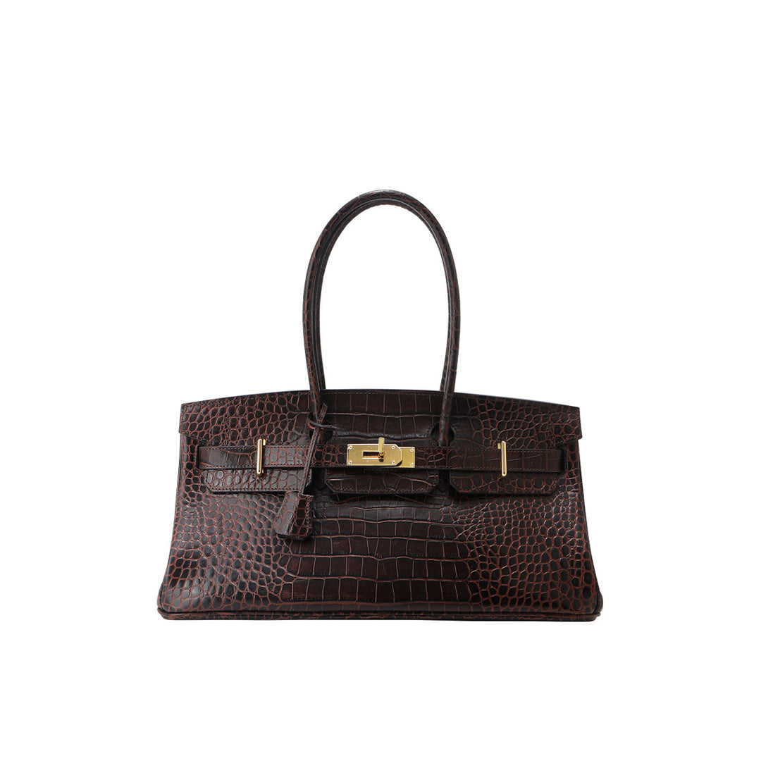 Crocodile Embossed Leather Inspired Birk Shoulder Handbag