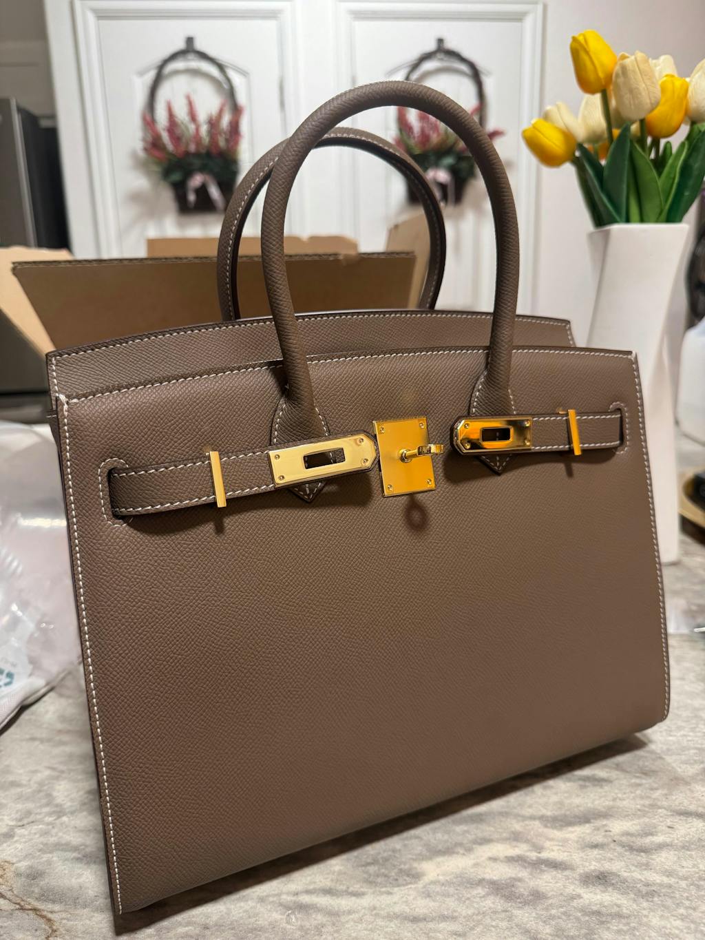I love my 25 Birkin bag. Bag came wrapped with extreme care, all accessories attached and in perfect condition. No odor and ready to use after unboxing. Bag is stiff and keeps shape perfectly. Exactly what I was looking for. Will be ordering again.