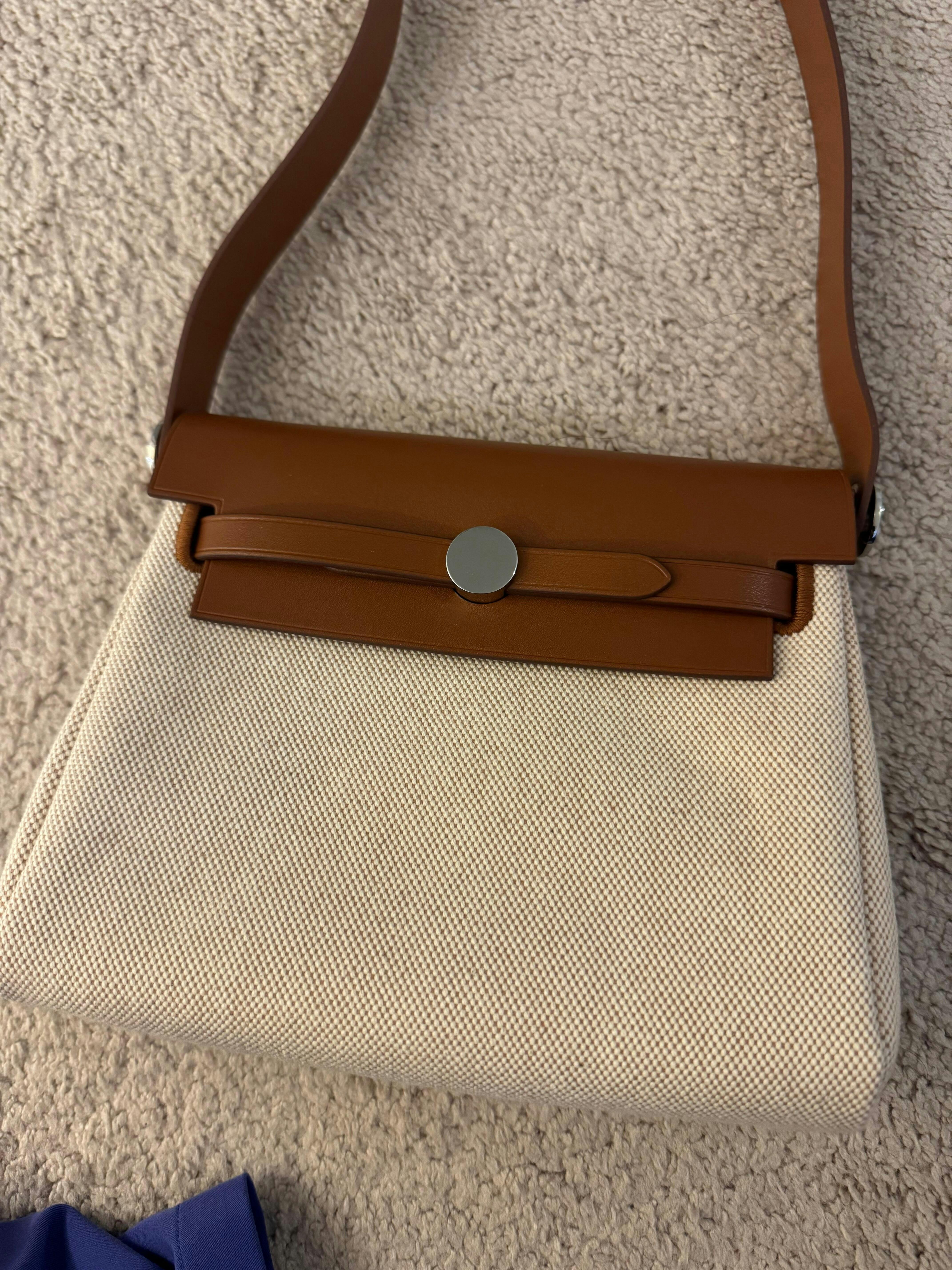 Brown Leather Canvas Inspired Mini Herbag 20 | Luxury Leather Bags