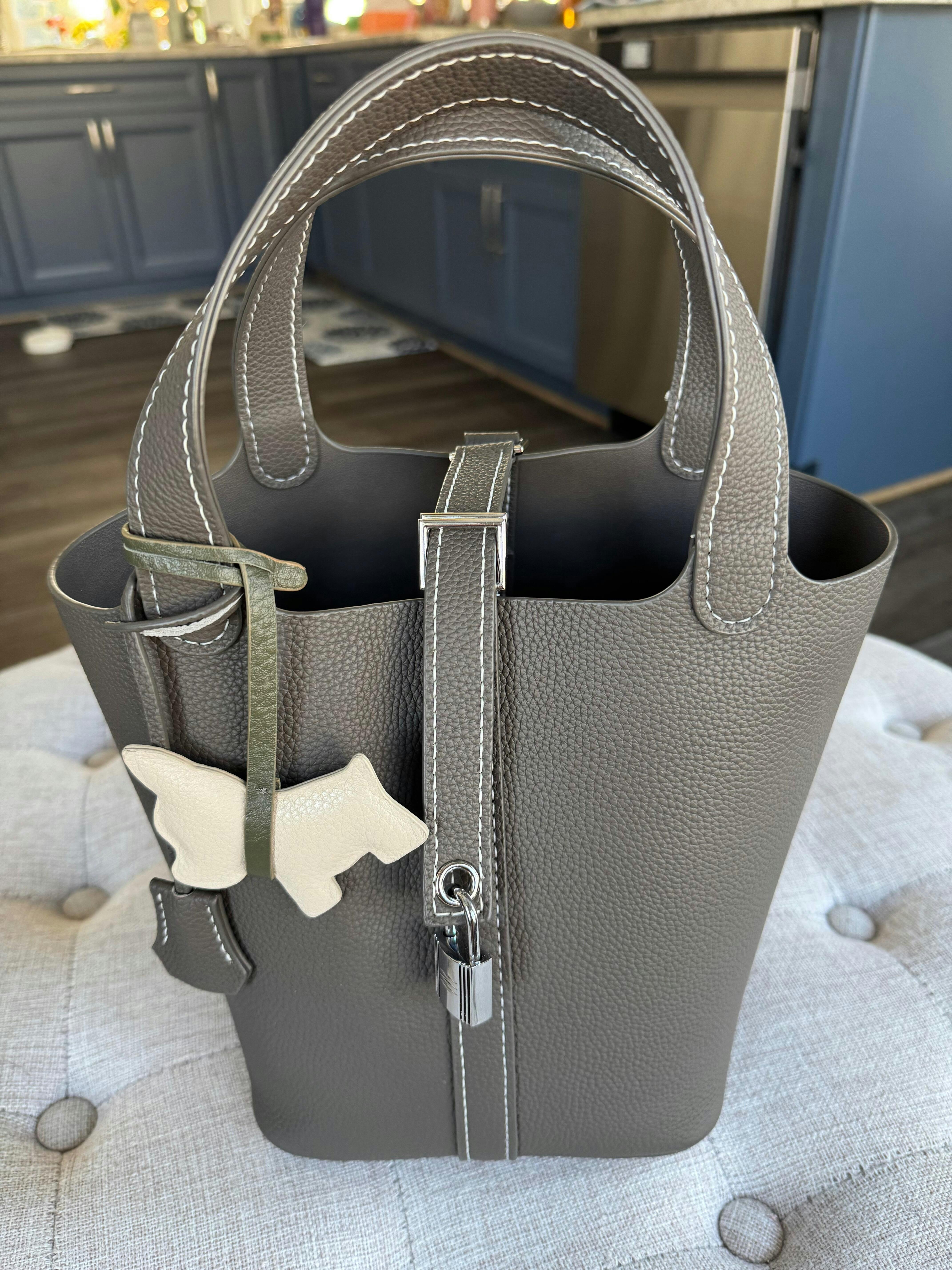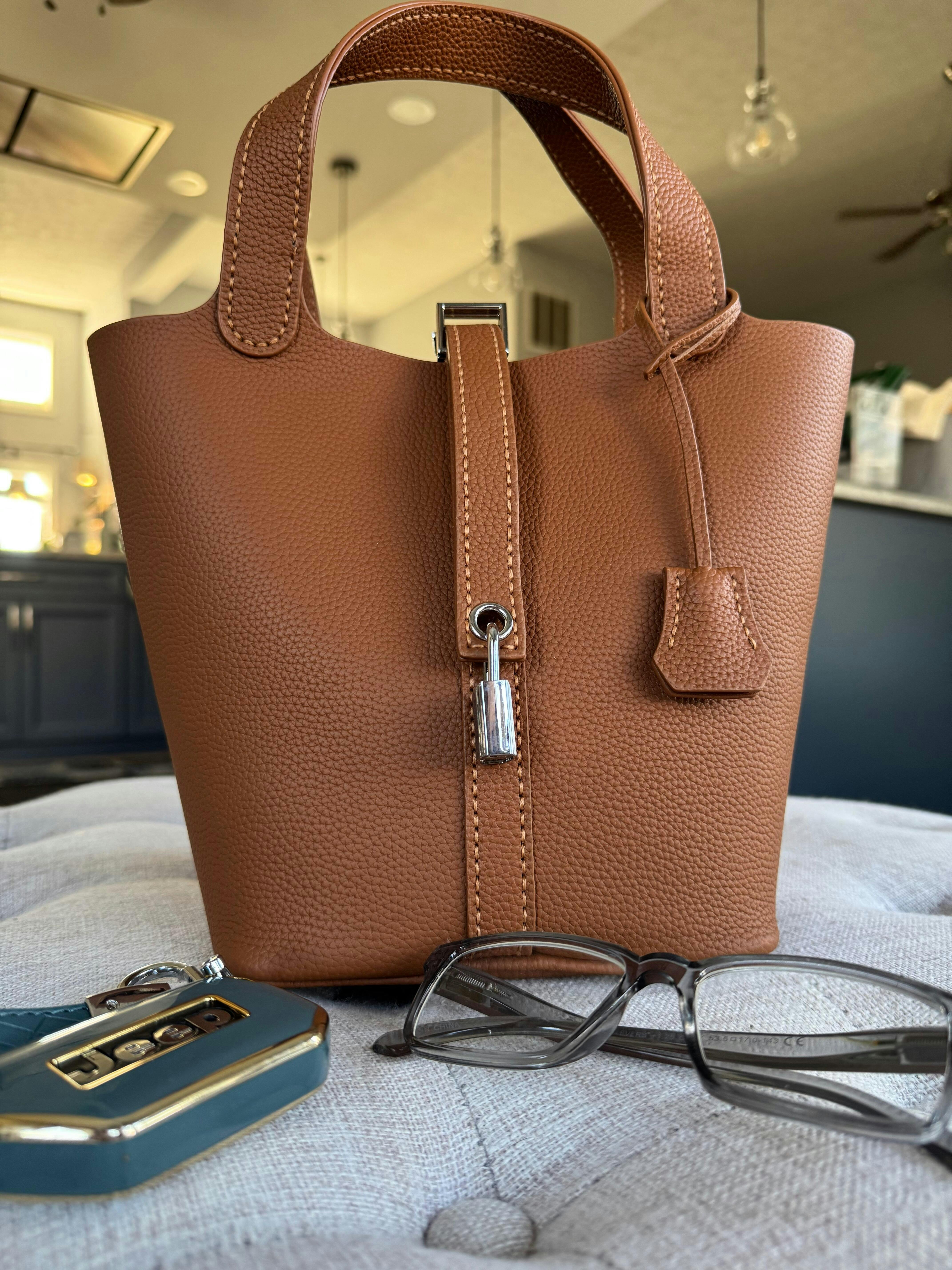 Top Grain Leather Inspired Picotin Lock Bag | Silver/Gold-tone Hardware