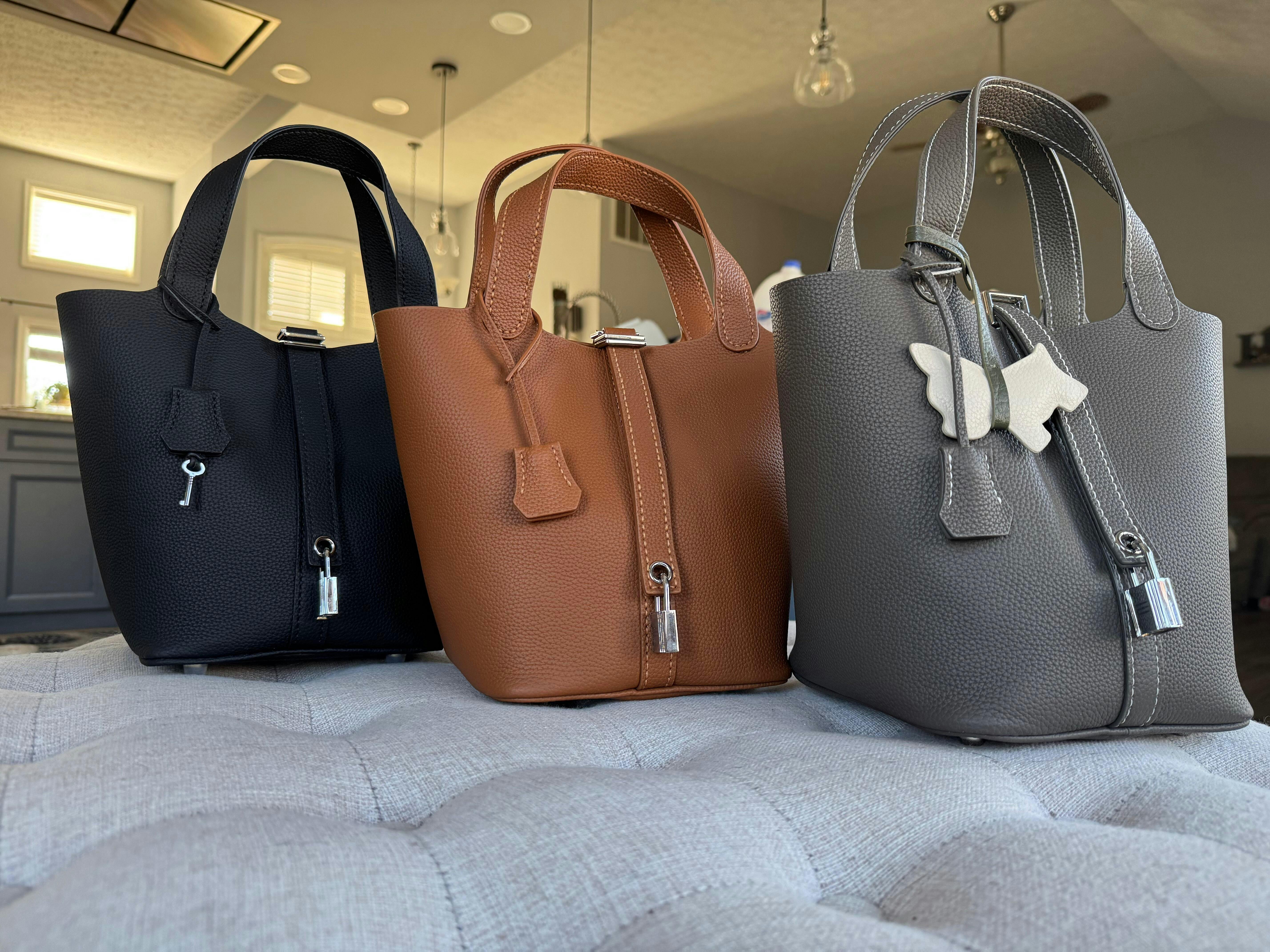 Black Leather Inspired Picotin Handbag | Classic Leather Bags