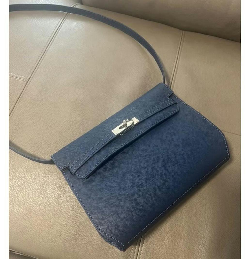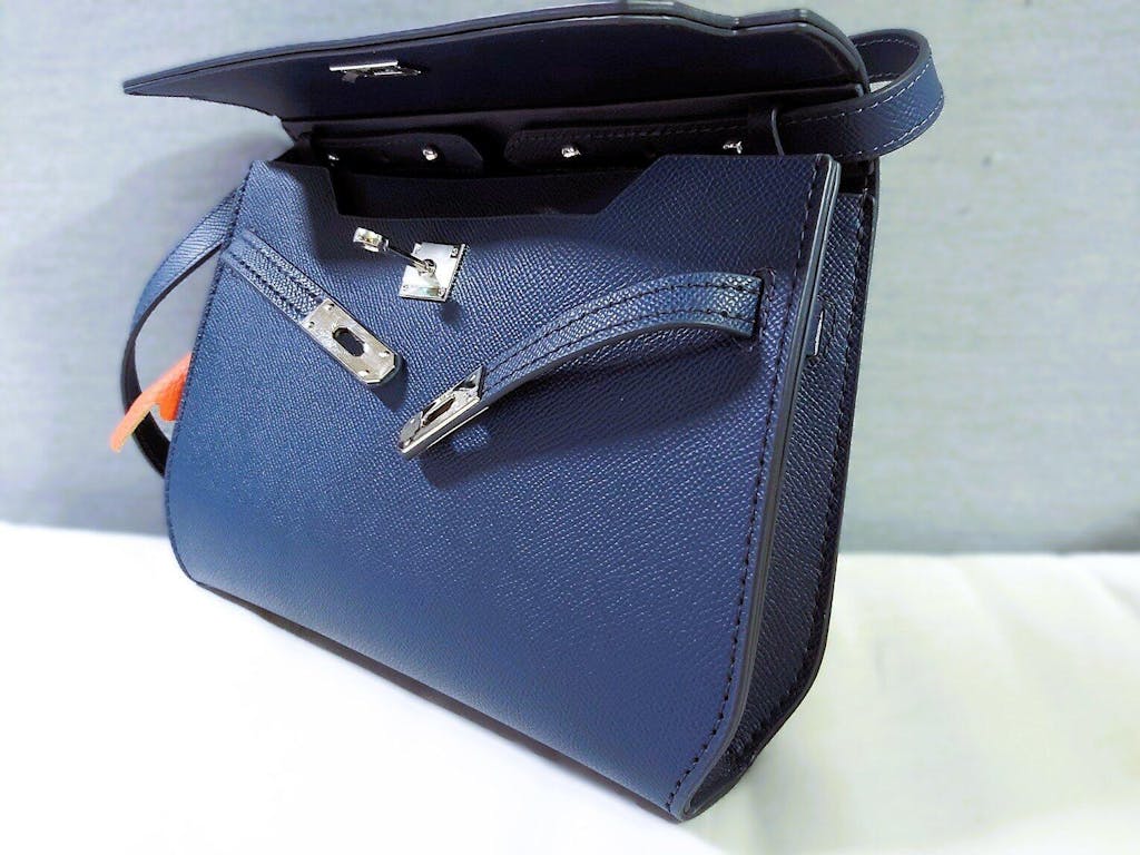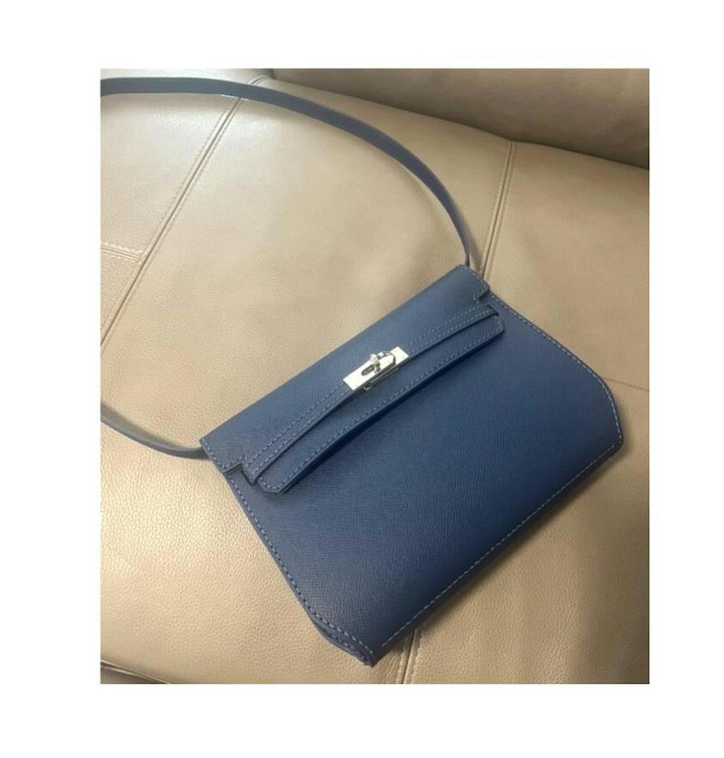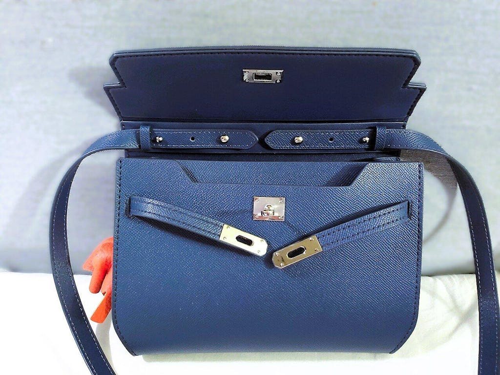 Genuine Leather Inspired Kelly Depeches Luxury Crossbody Bag in Navy Blue - POPSEWING™