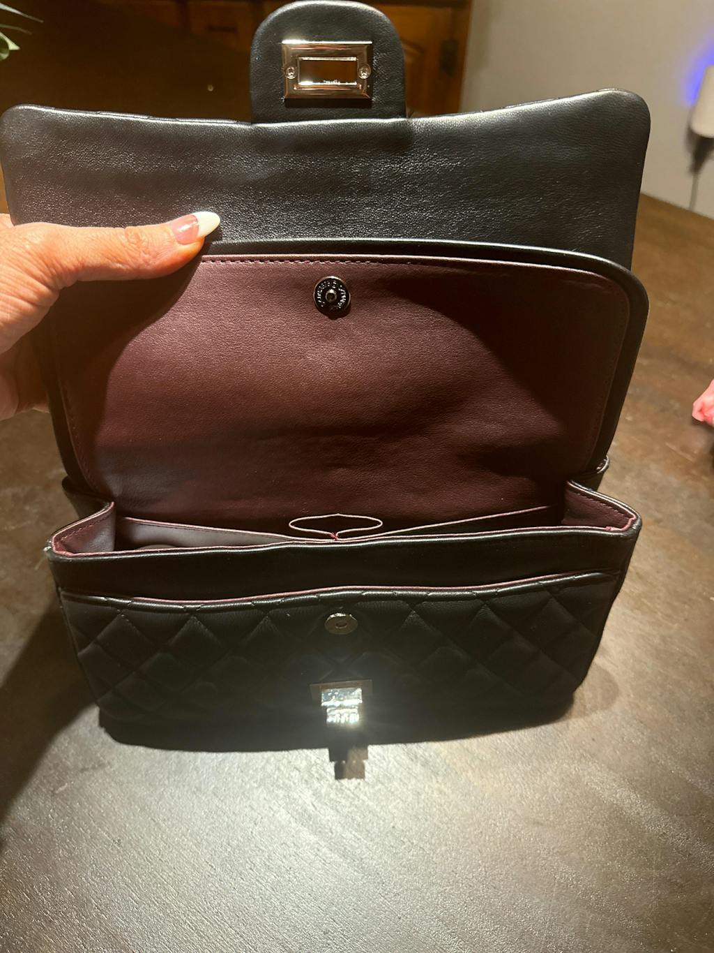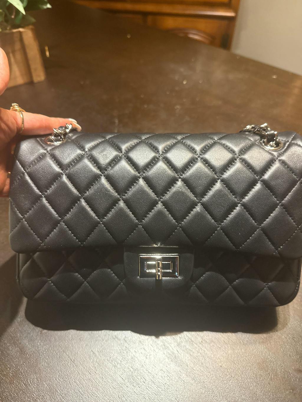 This handbag is greatly inspired by the 2.55 flap bag by luxury house, featuring with silver-tone twist fastening, and leather filled, adjustable chain strap. The bag is well structured. It has a zip pocket inside the flap. Then the main compartment can be reached by opening another flap. You can also find several small pockets for organizing your essentials. Its classic look matches to almost any outfit like chic or casual wears, ideal to use as an everyday bag or a day-to-night bag.