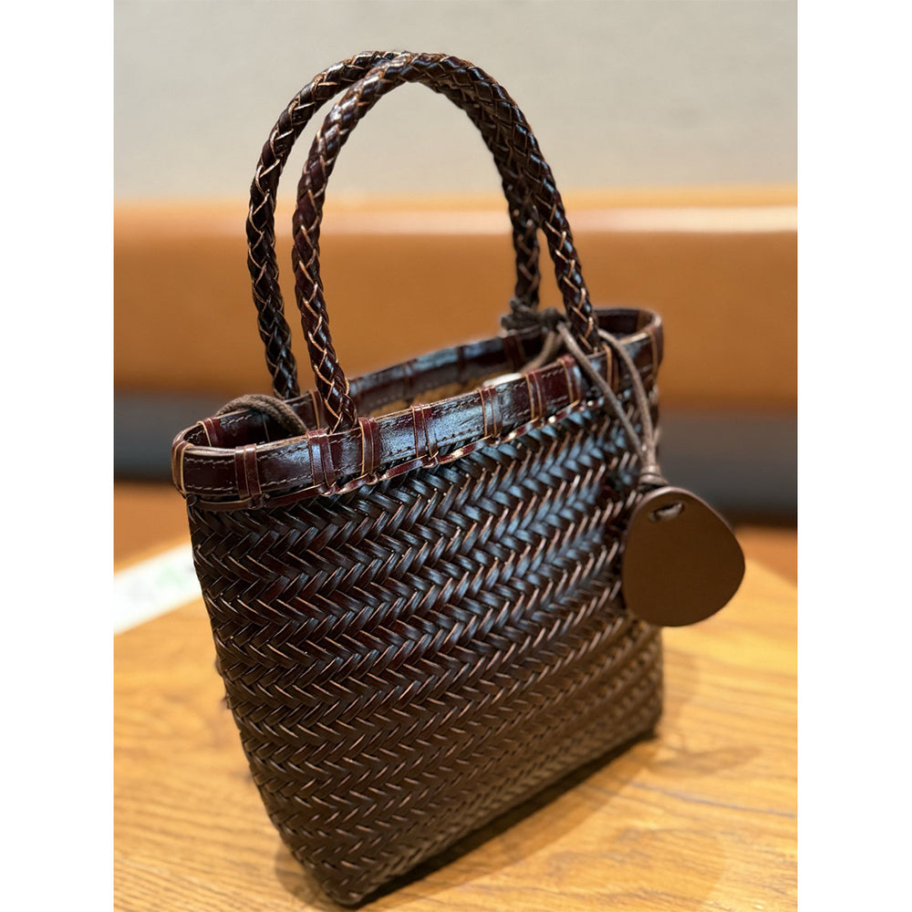 Vegetable Tanned Leather Vintage Woven Tote Bag